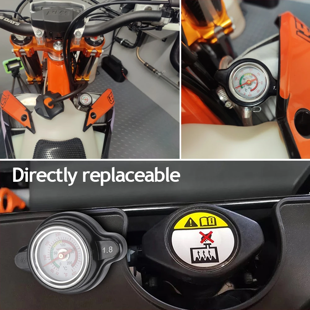 • Using a 1.8 bar radiator cap of 25.6 psi, you can easily monitor the temperature of the machine, and the pressure rating of the radiator cap is higher than the OEM cap.